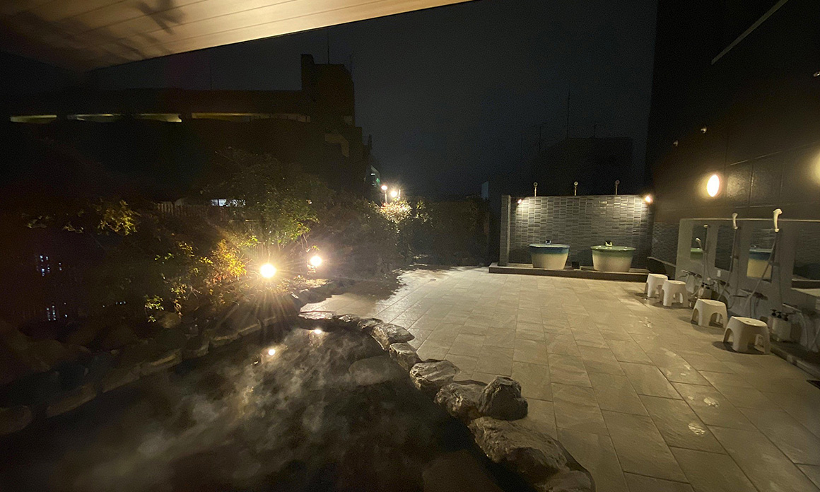 露天風呂では、移ろう空や木々のざわめきを感じながら、湯けむりに包まれる贅沢なひとときをお楽しみいただけます。