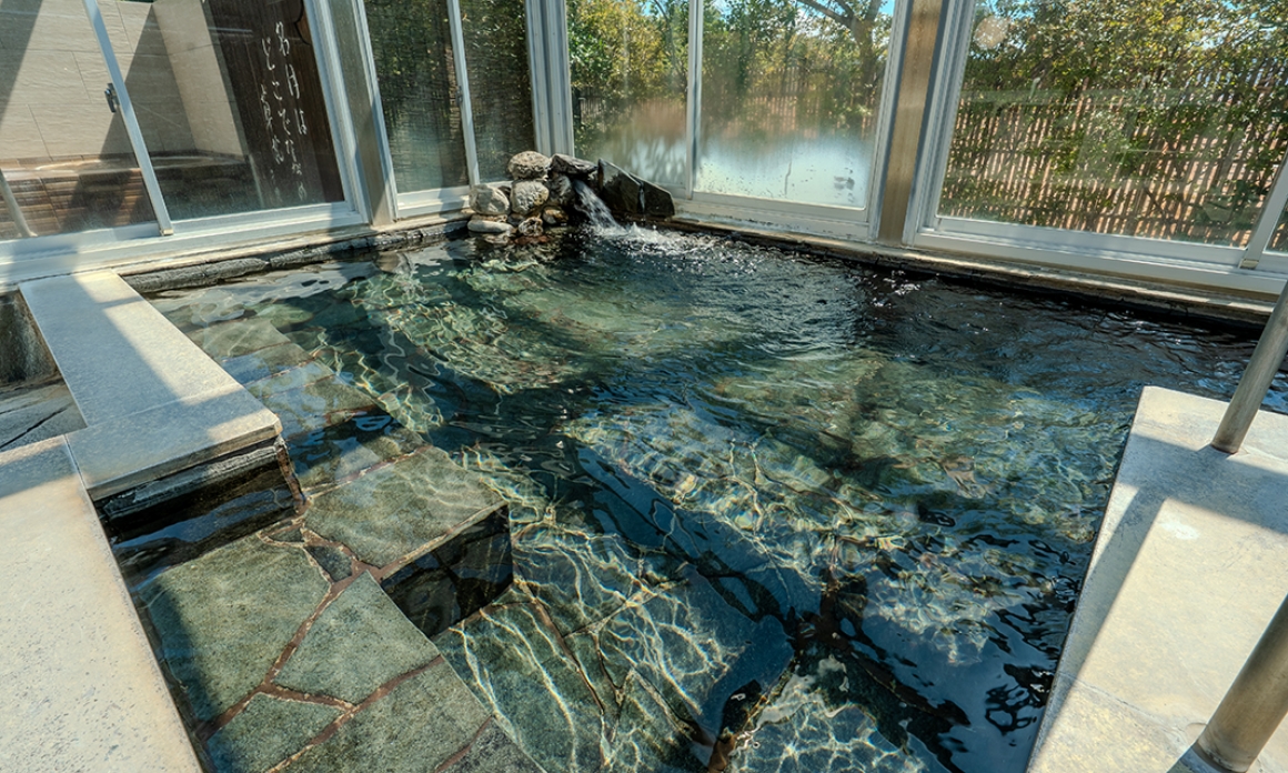四国でも数少ない良質な硫黄泉・奥道後温泉の源泉を引いた湯は、やわらかく肌になじむ“美人の湯”。